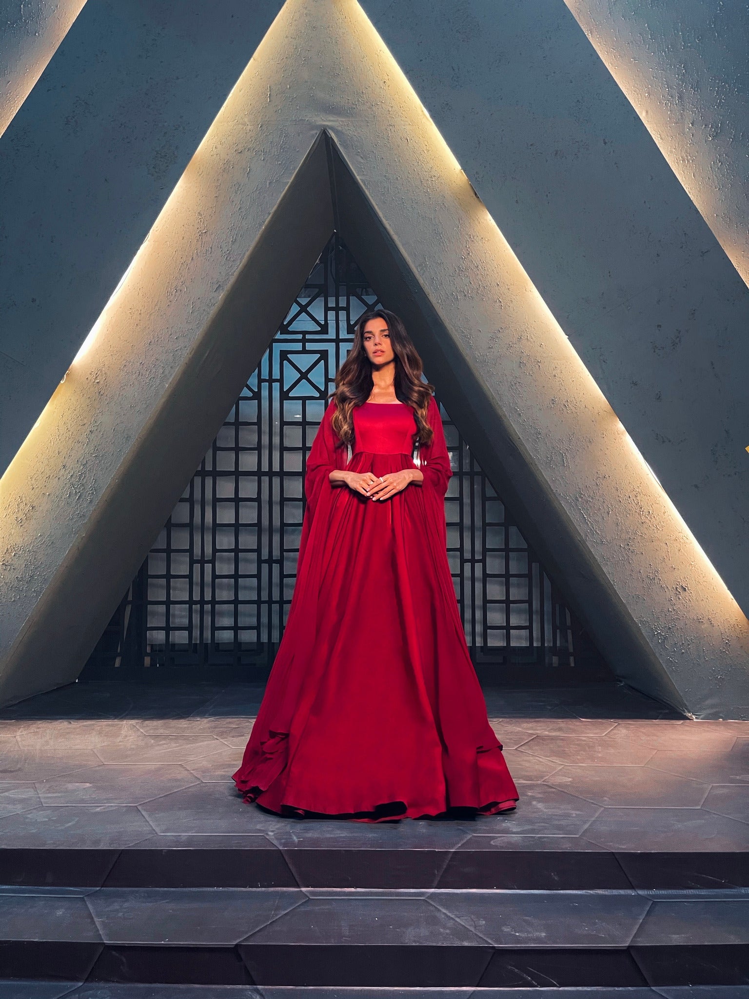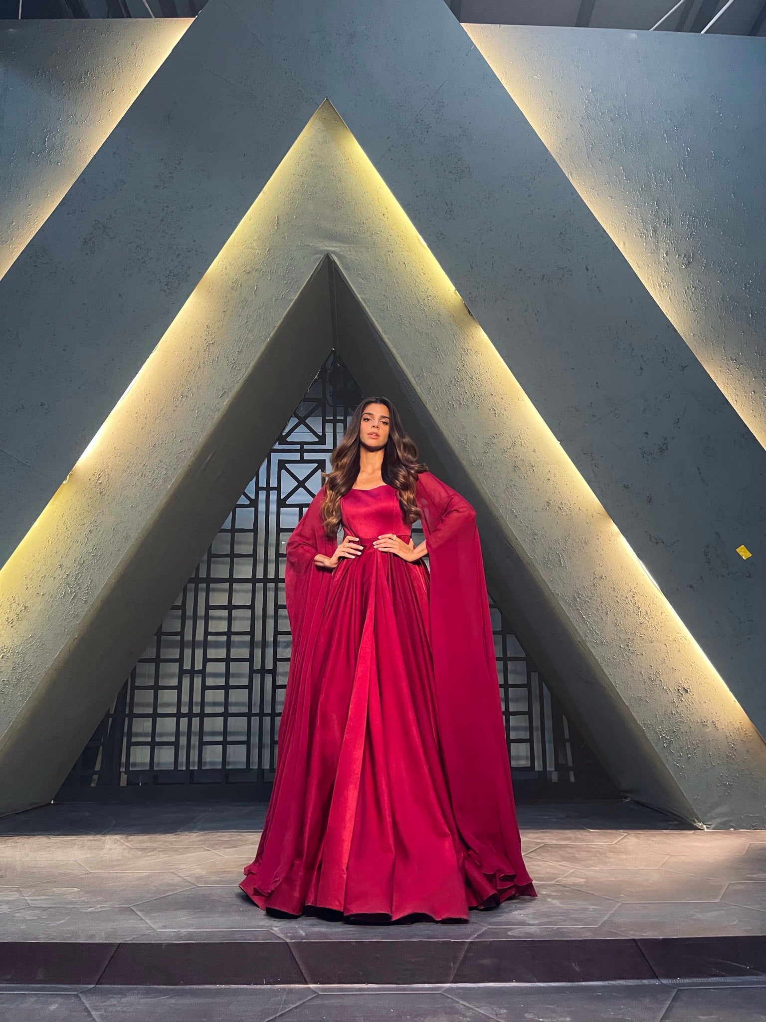 Are you looking for a luxury evening gown, not-too-revealing and yet stylish at the same time for your big day? Have a look at this classy deep red Long Chiffon-Sleeved Flared designer Gown which you can style and wear with the perfect accessories of your choice. Look classic and elegant in our haute couture gown and make your day more special. So, what are you waiting for?