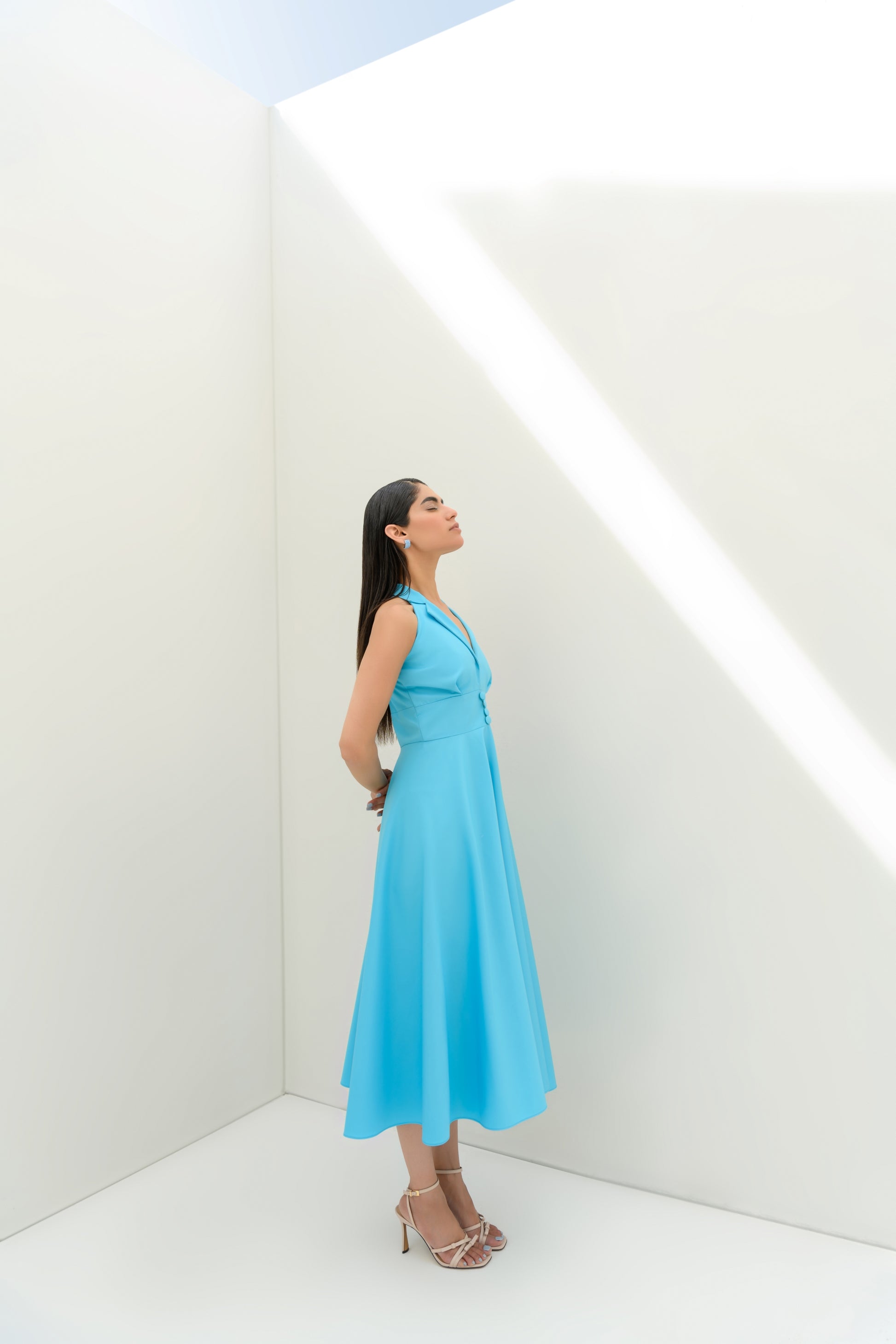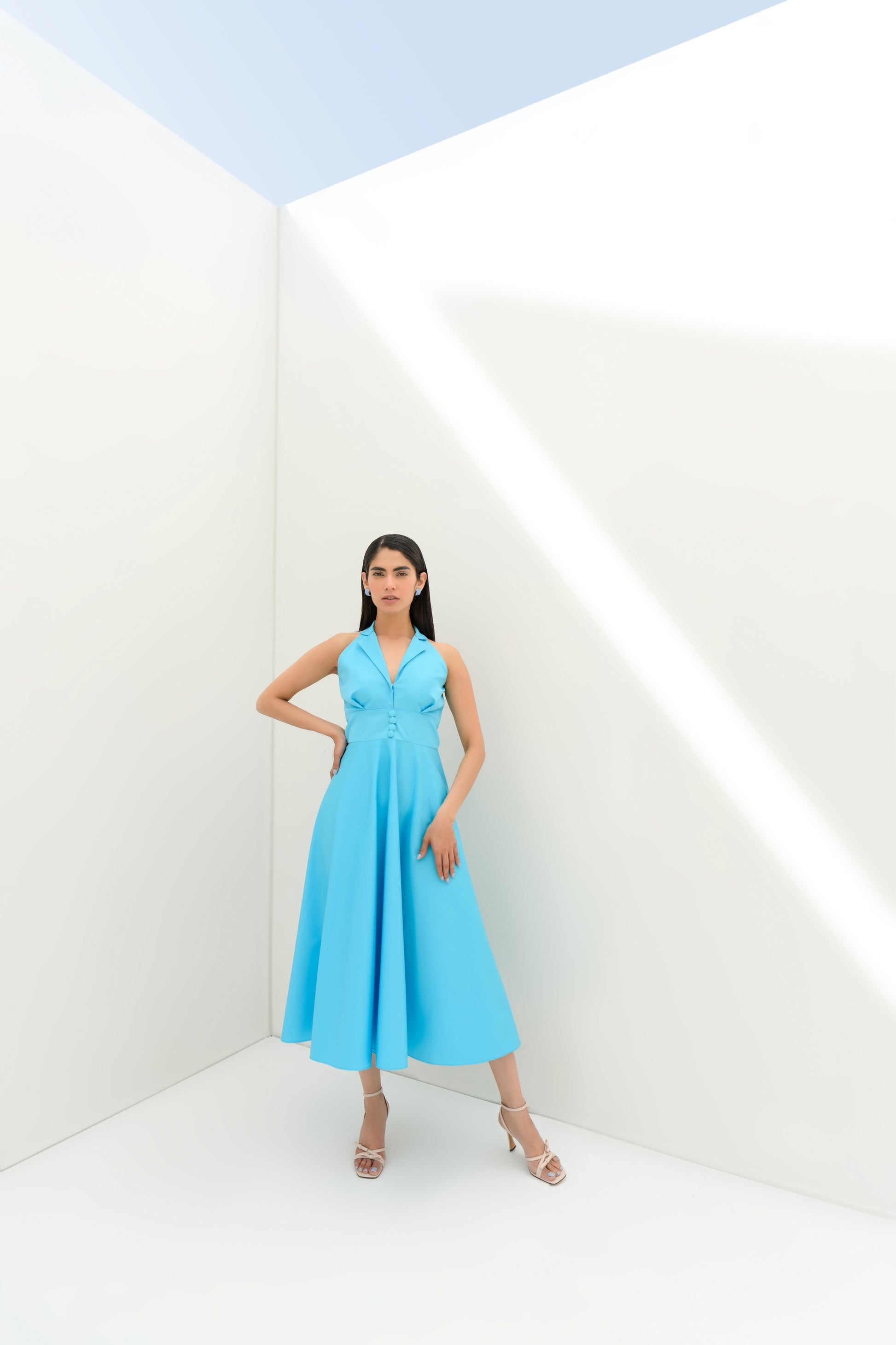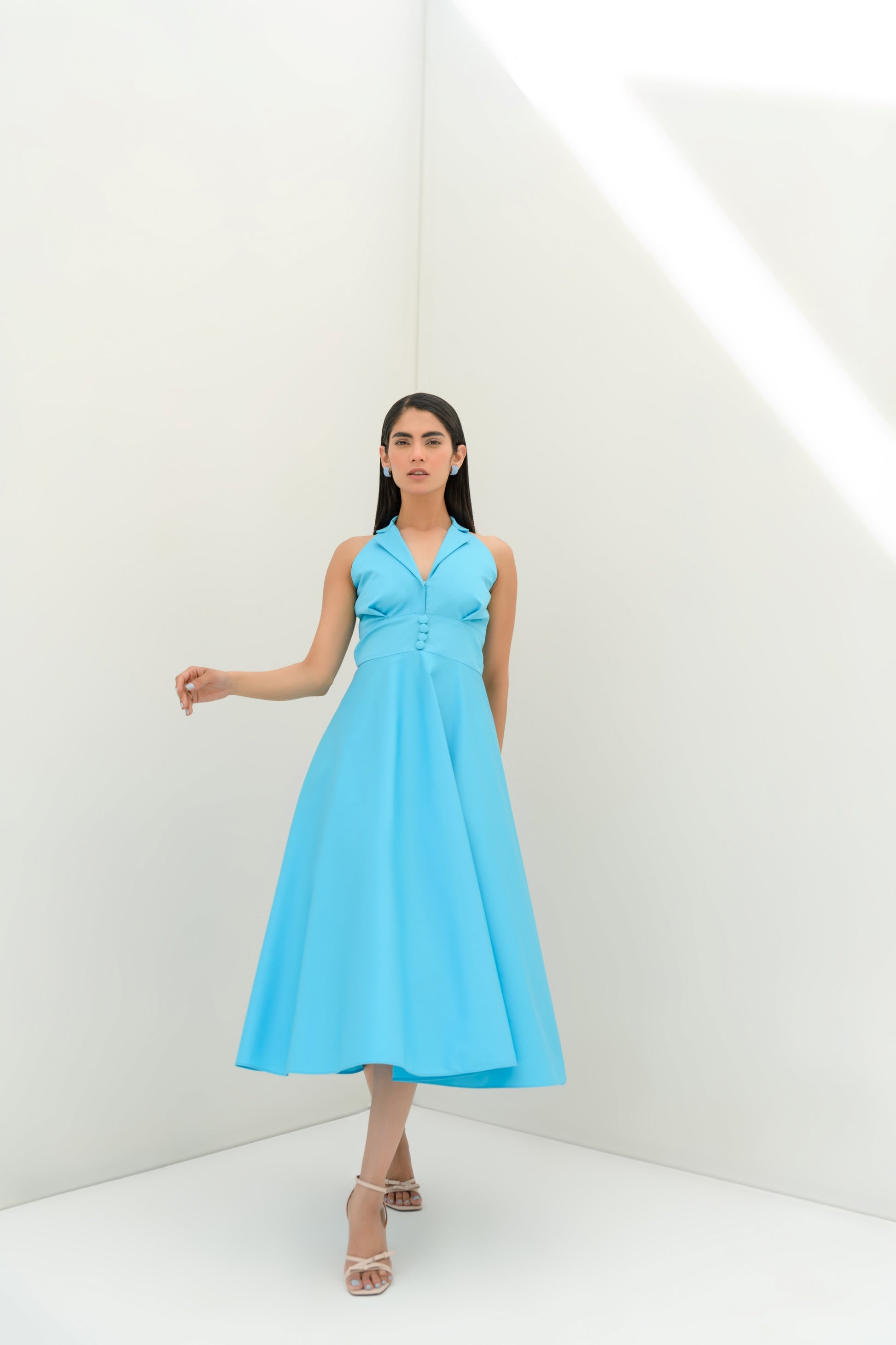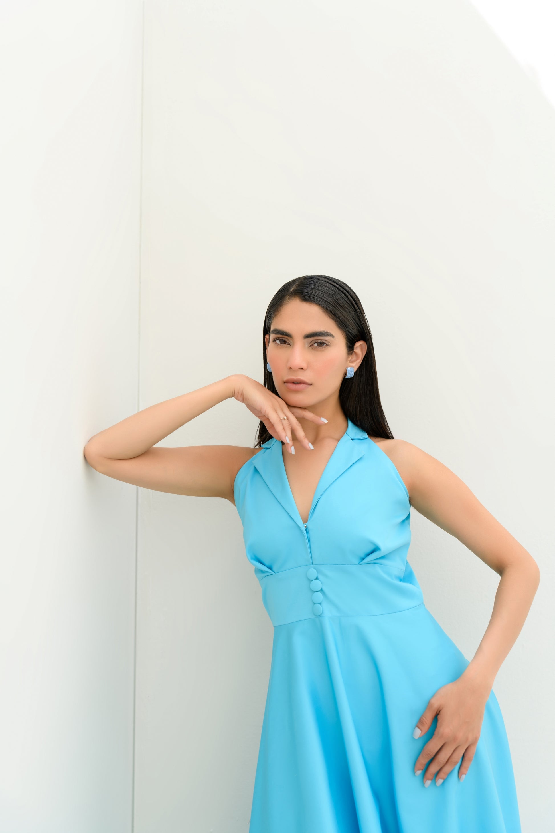 This stunning casual wear is designed to evoke a sense of effortless elegance, perfect for beachside events and social gatherings. The structured bodice with delicate button detailing enhance your curves while flowy A-line skirt gives a perfect look.
