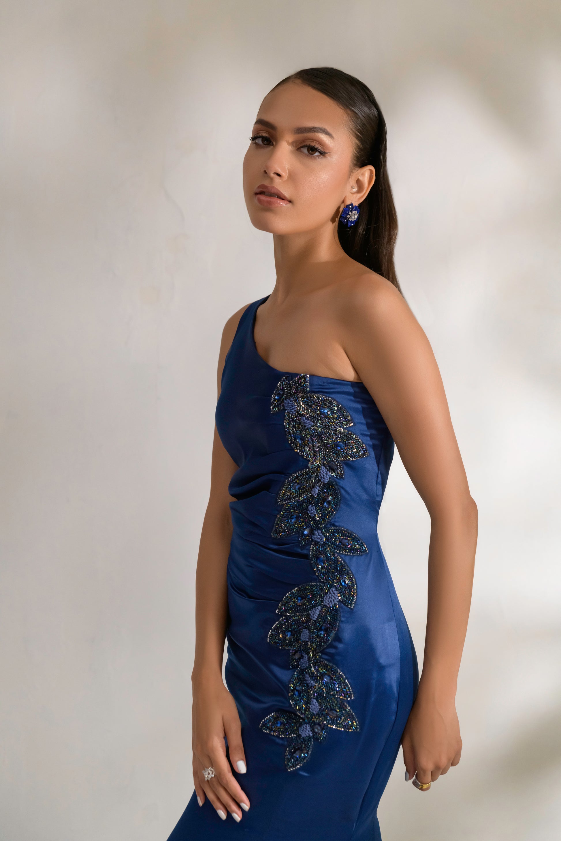 The latest must-have gown of the season is Lyra. This luxury maxi has been cut in a deep shade of our premium silk that hugs every curve. Boasting a twisted asymmetric neckline, with beautiful crystal embroidery on the sideline.