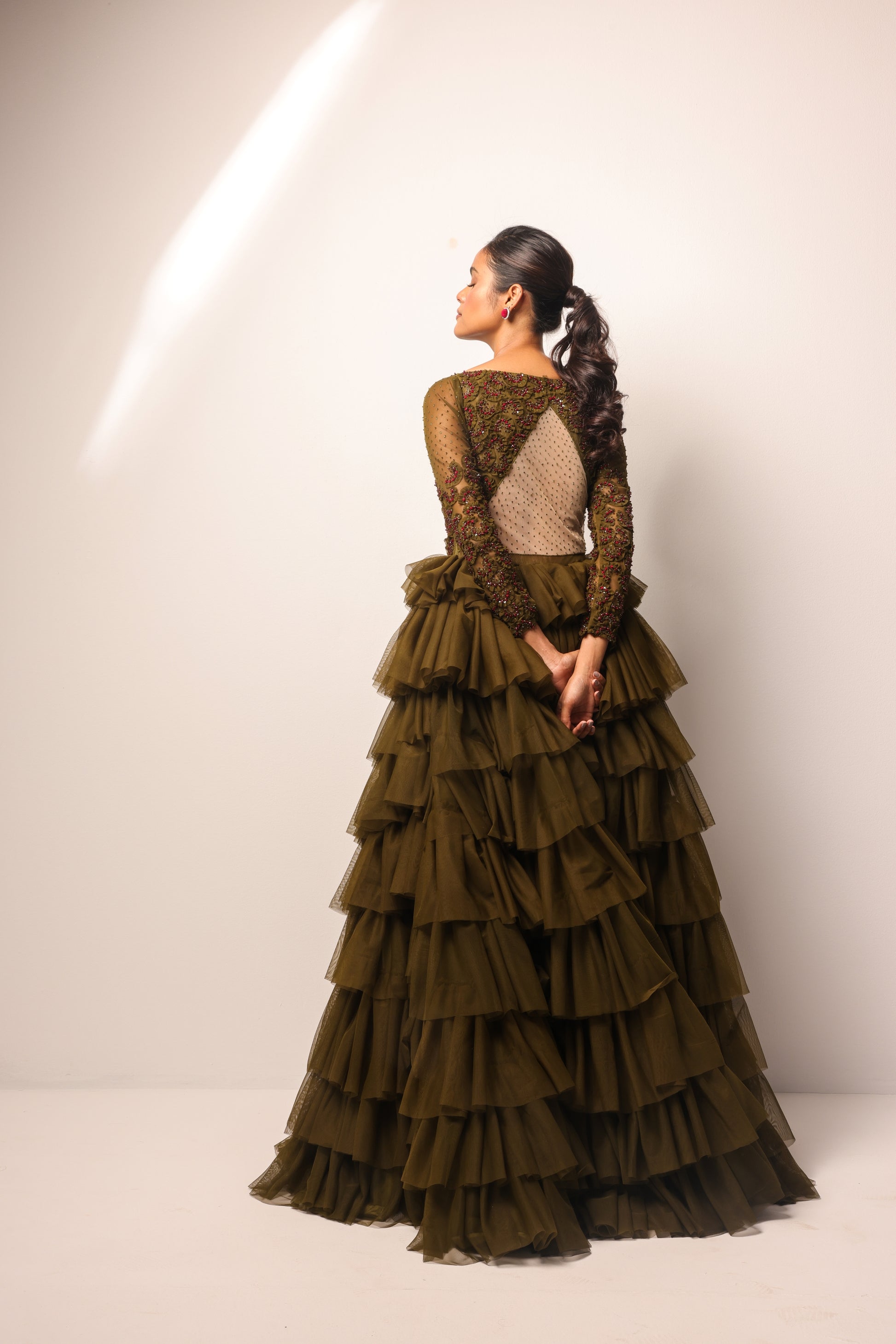 Note: This is a custom-tailored designer gown and delivery will take minimum 15 days.