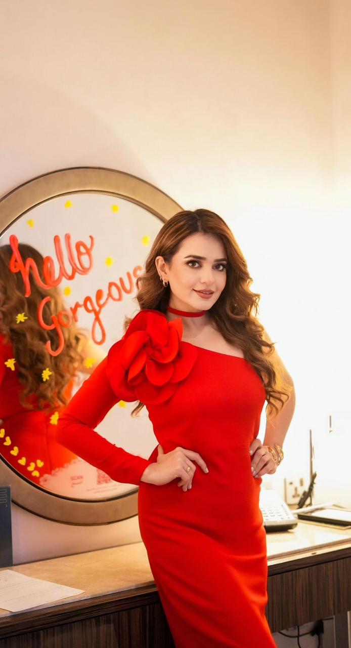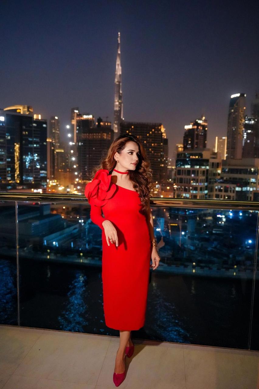 Scarlet Flame is crafted from fine georgette in a striking red hue. With its one-shoulder neckline, hand-made 3D flower detail, and delicate 0.5-inch neck tie, this body-fitted pencil silhouette is perfect for making an unforgettable statement at evening events.