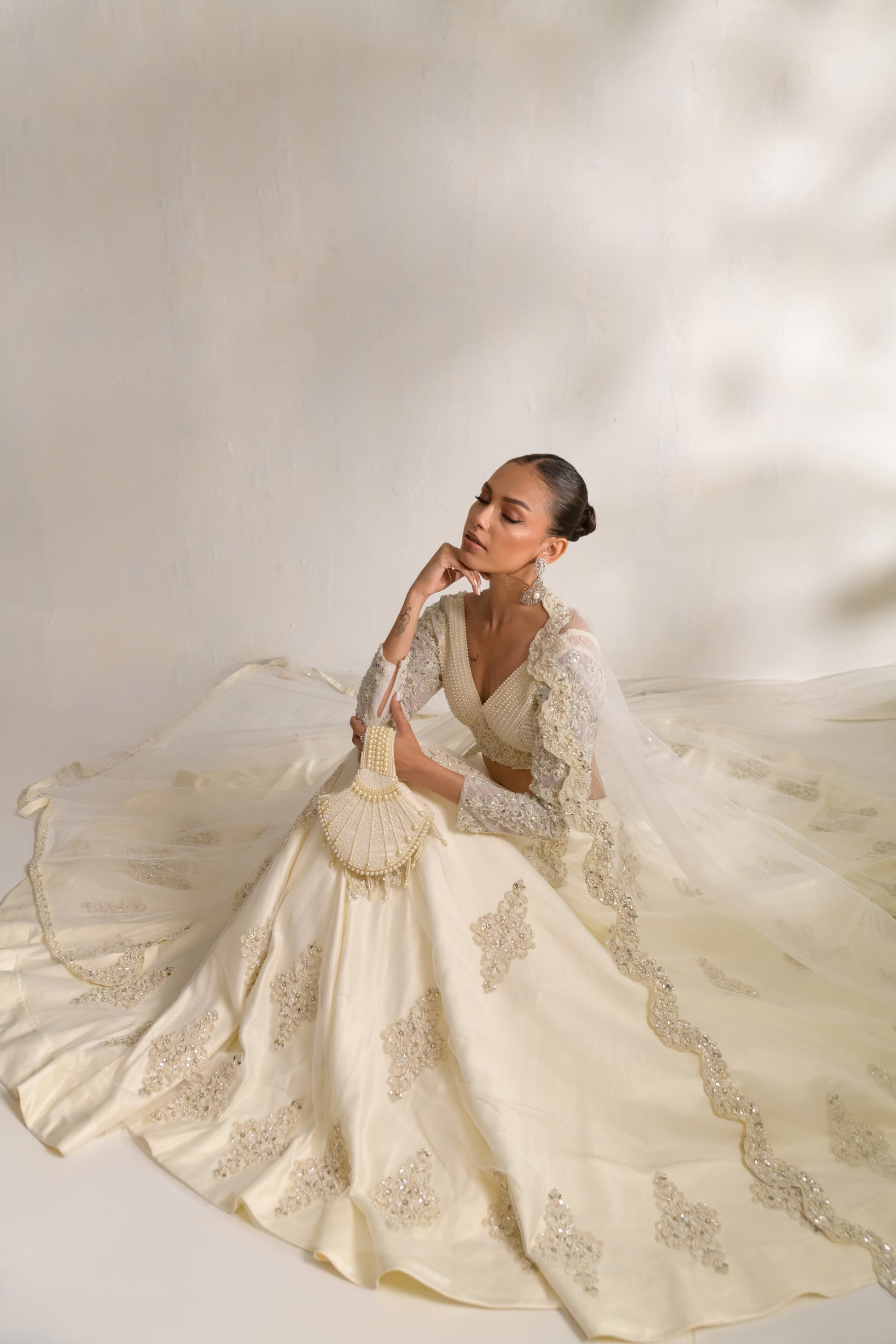 · Flowing lehnga with ornate embroidered motifs for a grand royal look