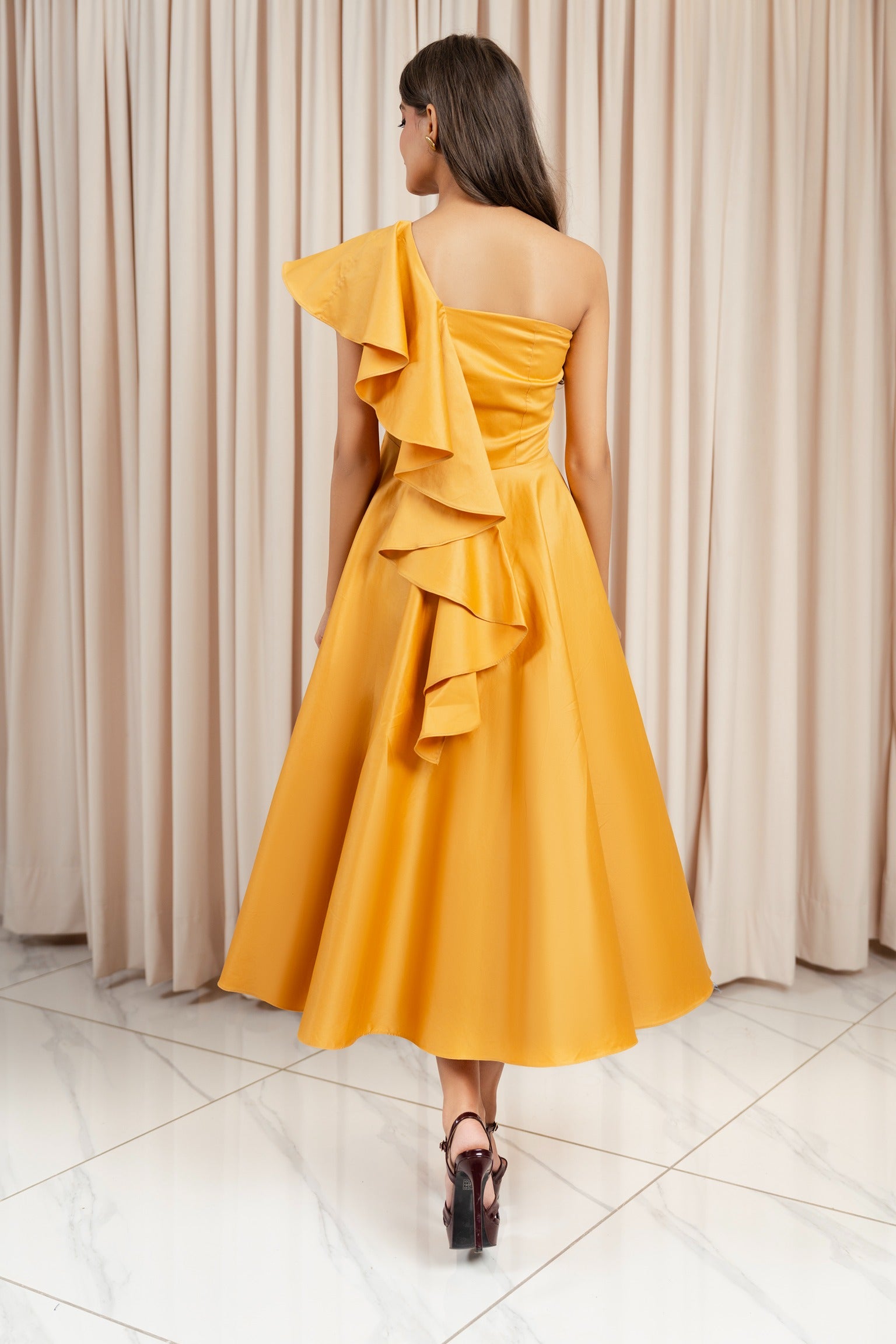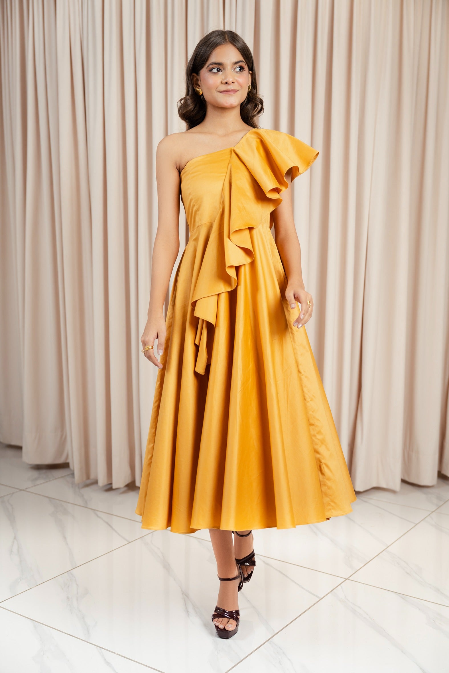 This one-shoulder ruffled western dress blends structured elegance with fluidity, making it a must-have for fashion-forward women who love to stand out. This western casual wear is perfect for occasions where elegance meets modern fashion.