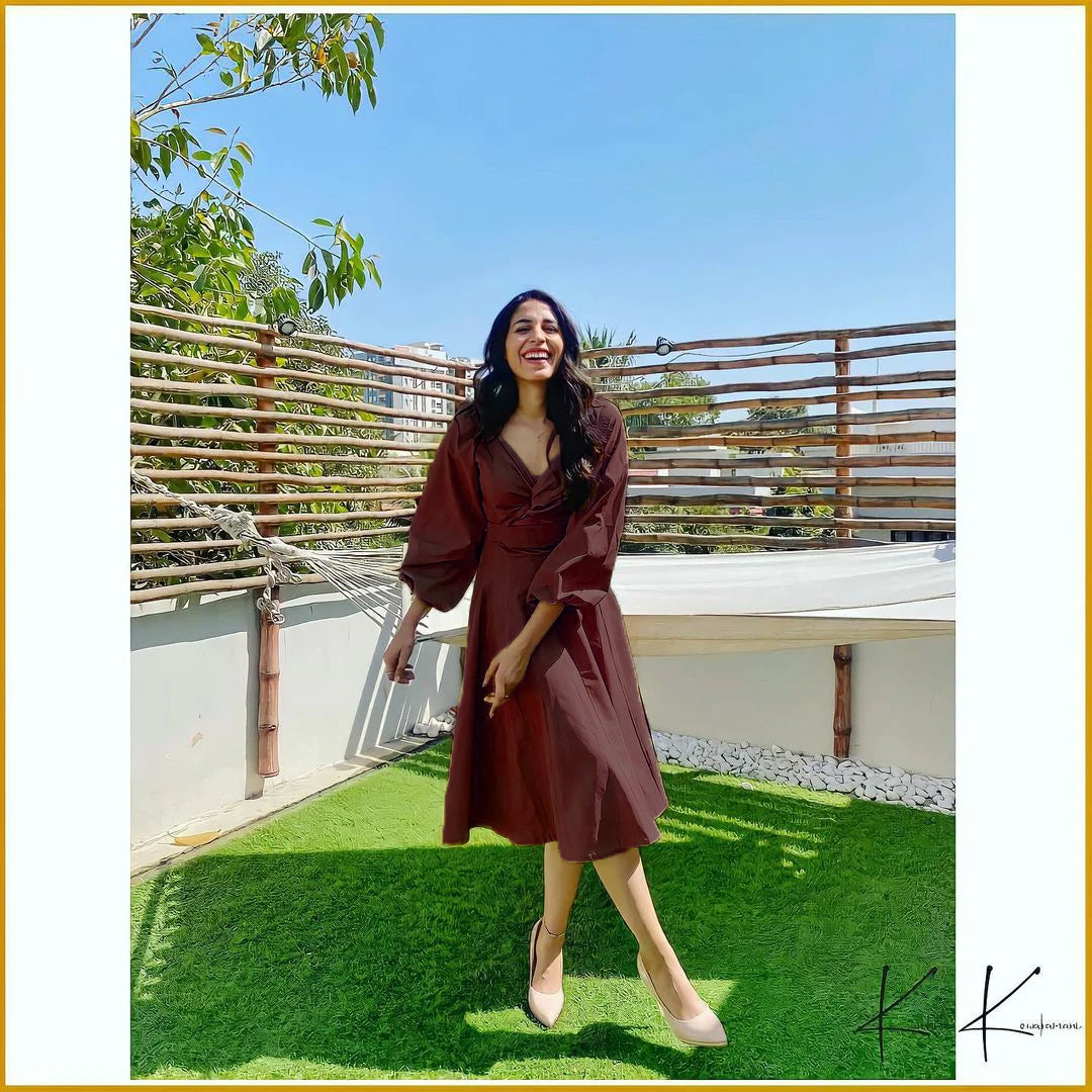 This sophisticated casual dress blends contemporary style with a touch of vintage charm, making it for casual chic wear. Featuring a deep V-neckline, twisted bodice detailing, and a chic front cut out, it accentuates the waist beautifully.